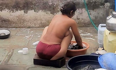 Sizzling desi spectacular girl having fun here with village boyfriend taking bath on river.