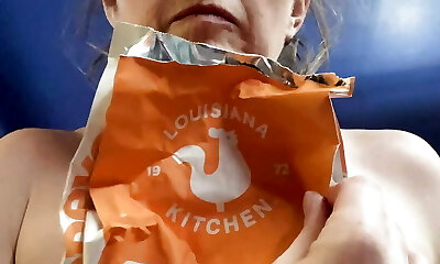 Comfort munching! Heartbroken Rachel Wriggler fights to hold back the tears as she licks Popeyes for breakfast at 6pm