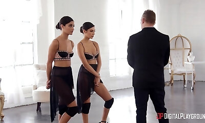 कोमल नर्तकियों गियाना डायर और एमिली विलिस एक आदमी द्वारा जोता