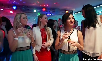 Slutty girls goes nasty in the night club and take part in a insatiable group orgy